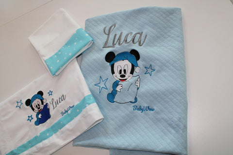 Per il piccolo Luca coordinato con topolino con cuscino, con nome personalizzato.