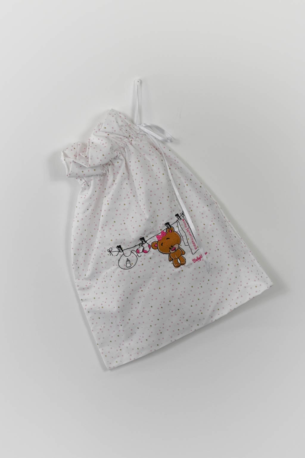Sacco per il primo cambio del bebè, perfetto per l’ospedale ma utile anche dopo. Chiusura con nastrino, 100% cotone, Made in italy.